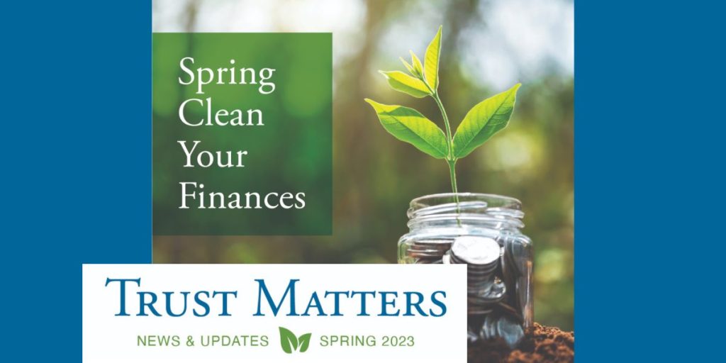 If you haven’t already, put together a personal balance sheet and keep it updated as circumstances change. By re-evaluating your financial future and your estate plan on an annual basis as part of your spring cleaning, you and your family will have the best possible guidelines in place should the need arise. Contact us at Trust Services to get started.